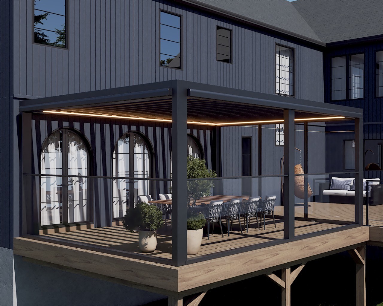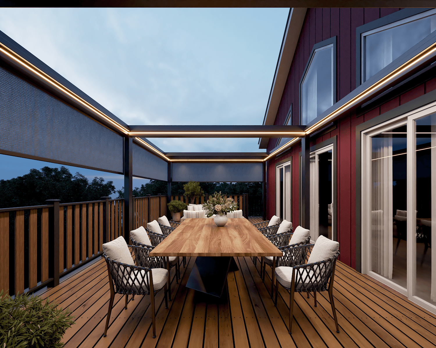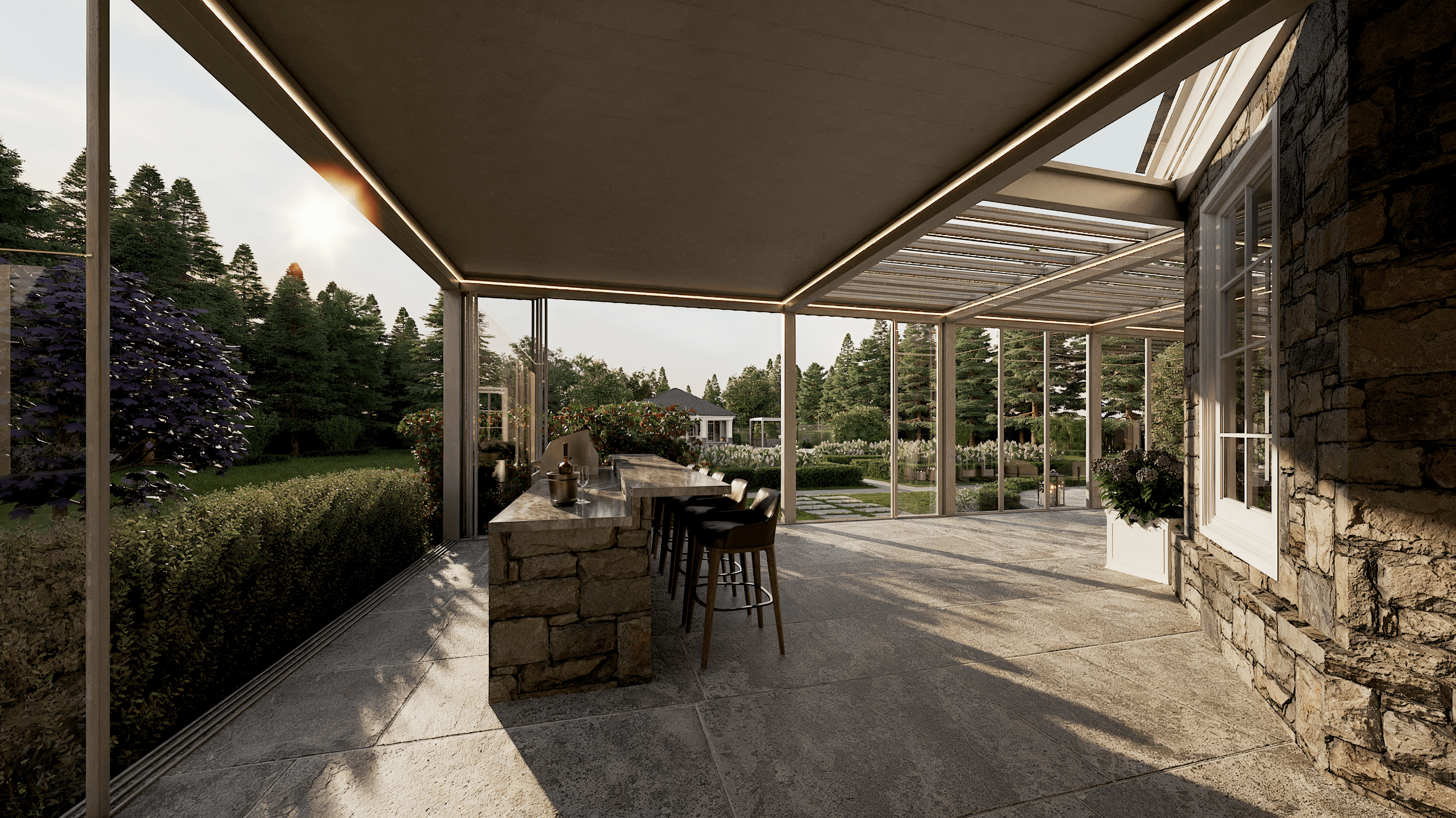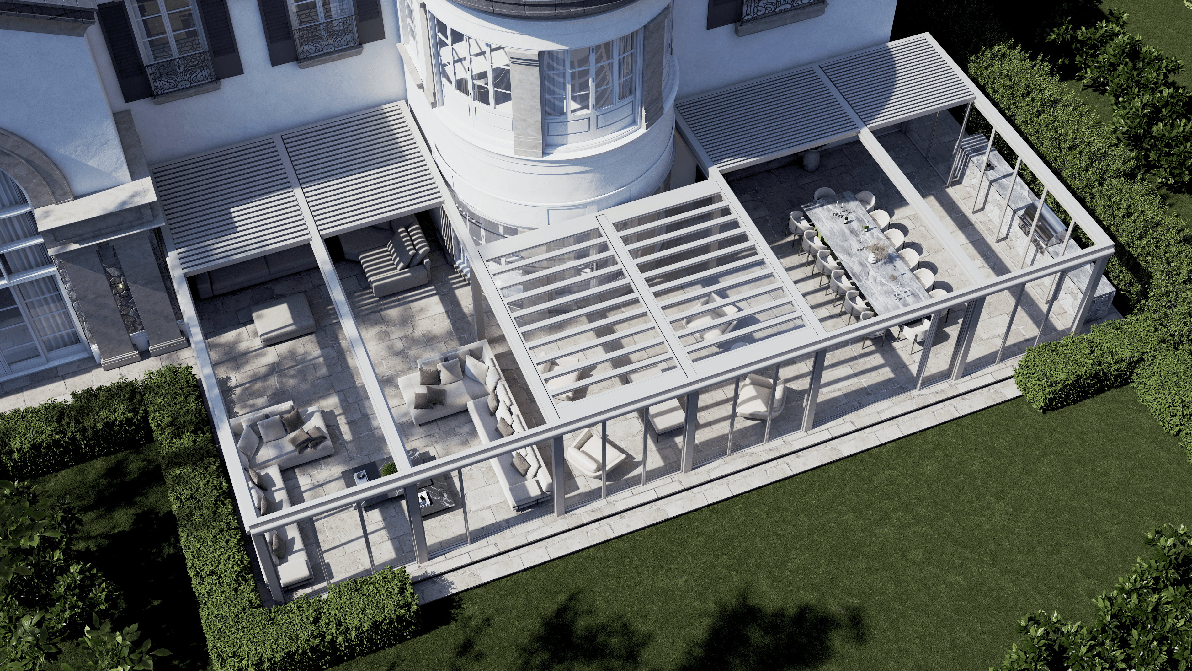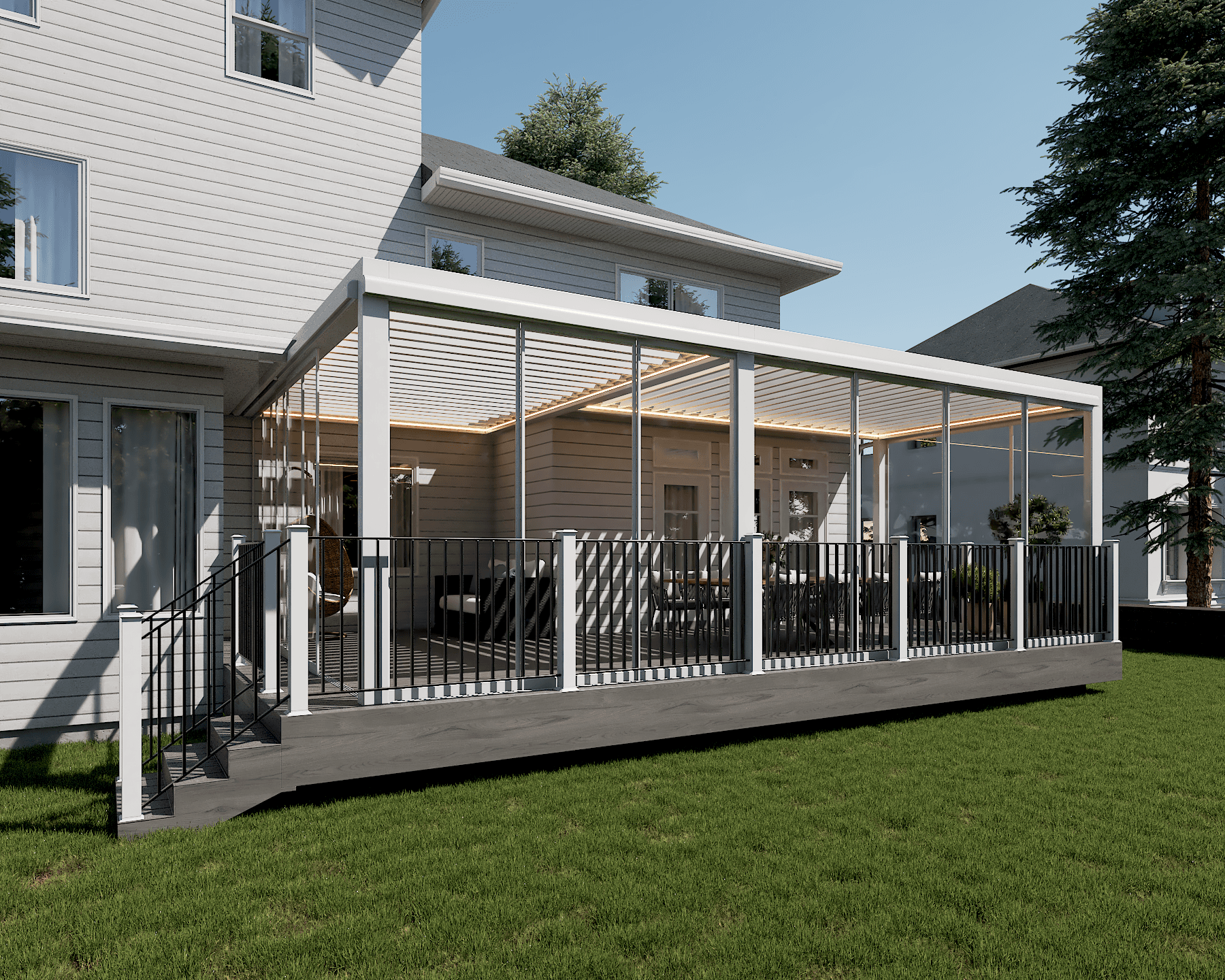 PergolaOne creates next-gen four-season extensions built for modern comfort and convenience. We create rooms that adapt to every season. Open to the sky when you want light. Closed and insulated when you want shelter and warmth. A dynamic space that feels outdoors and indoors at once.