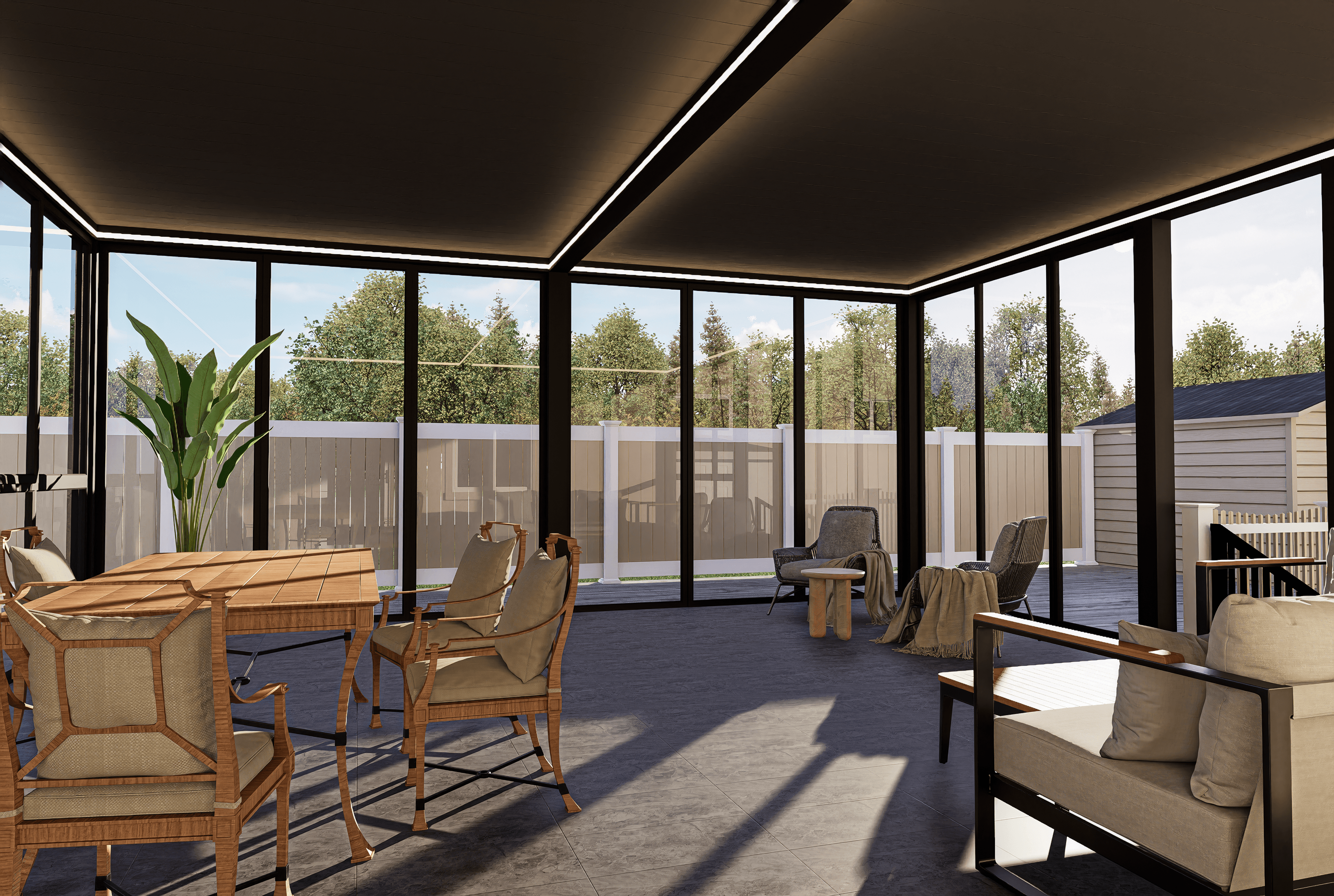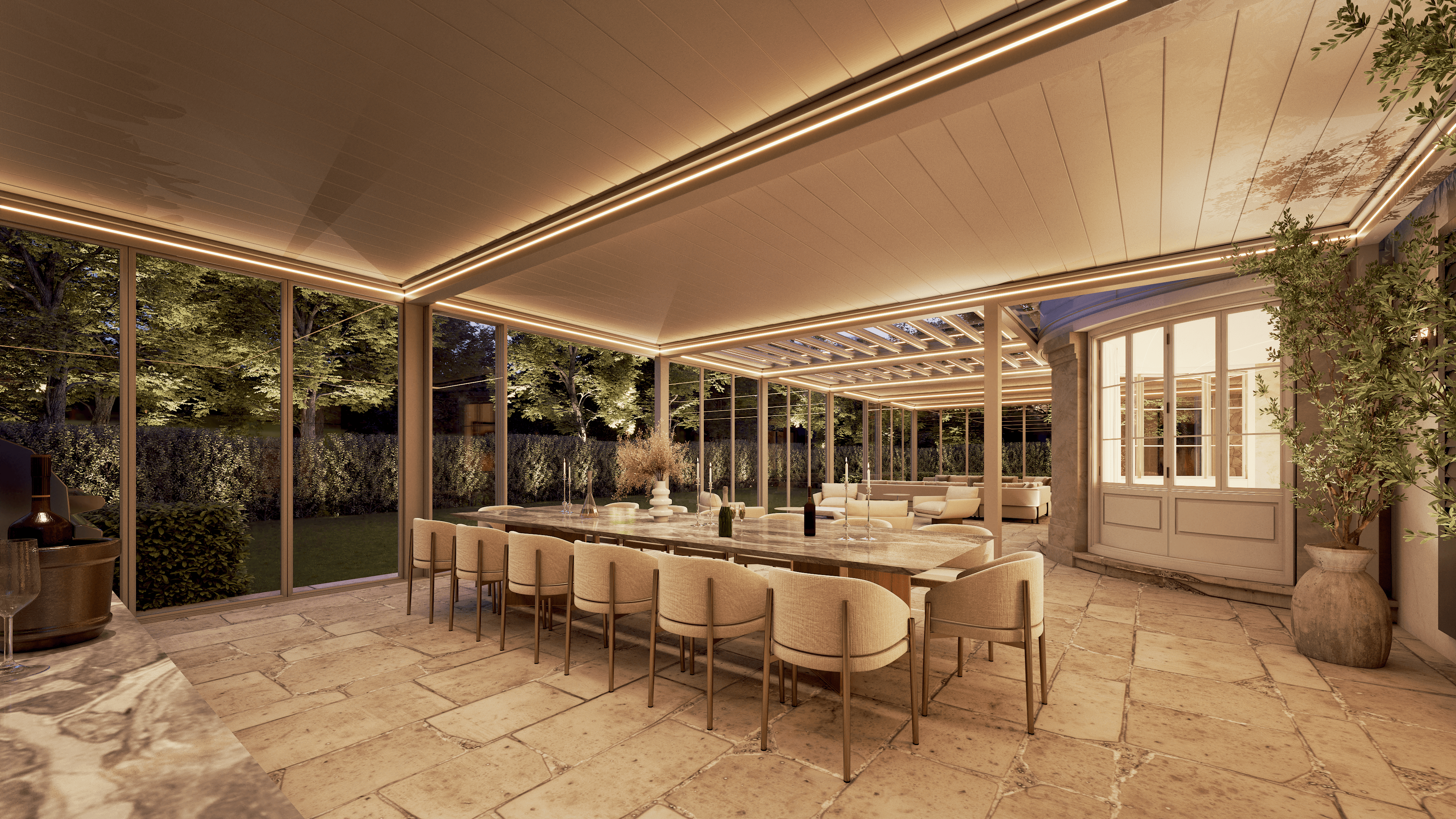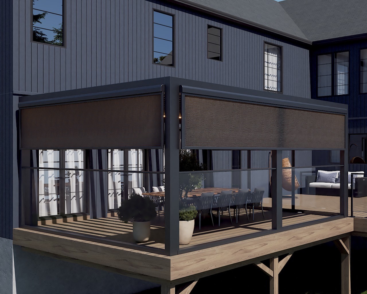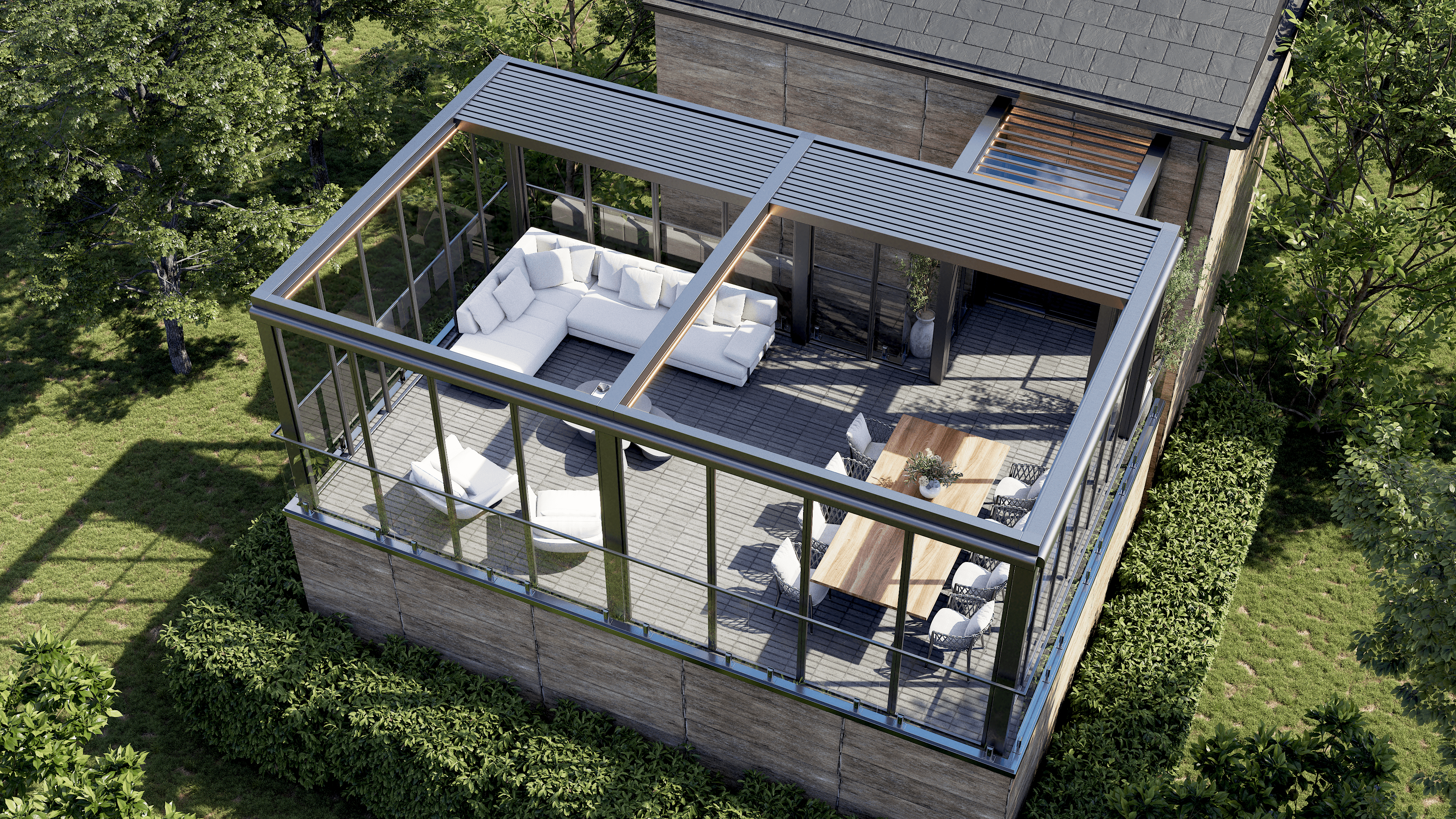PergolaOne creates next-gen four-season extensions built for modern comfort and convenience. We create rooms that adapt to every season. Open to the sky when you want light. Closed and insulated when you want shelter and warmth. A dynamic space that feels outdoors and indoors at once.