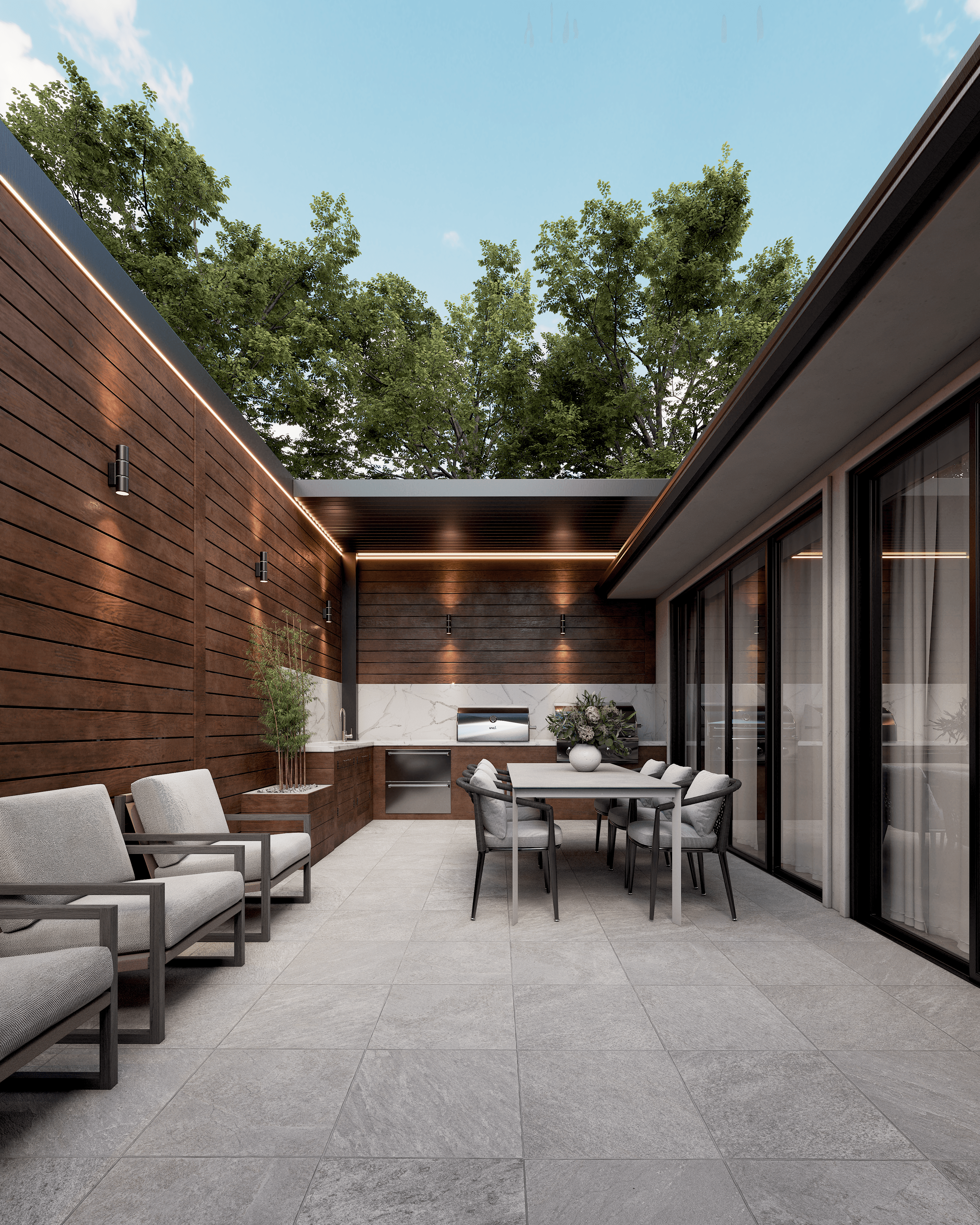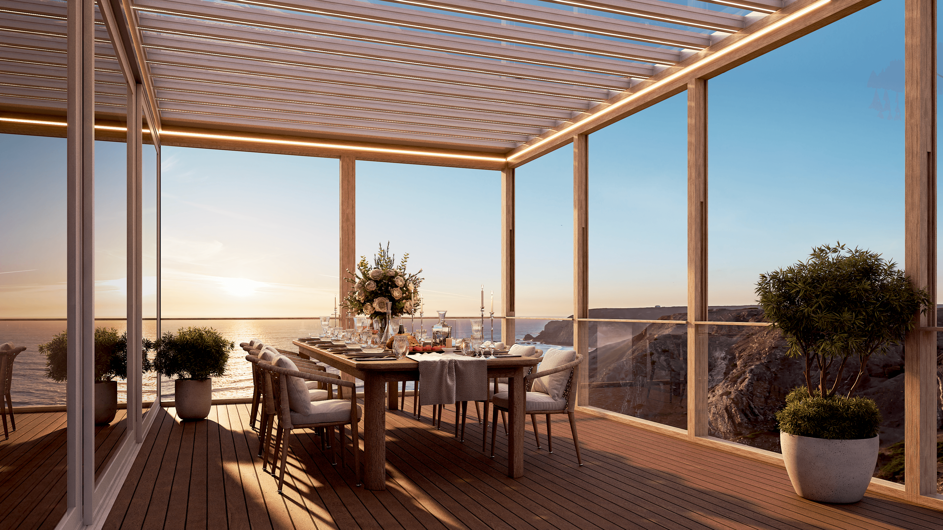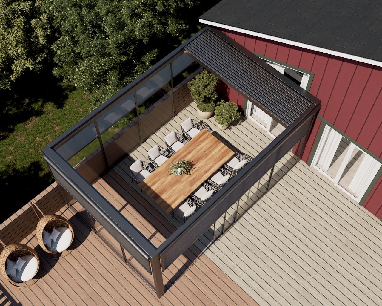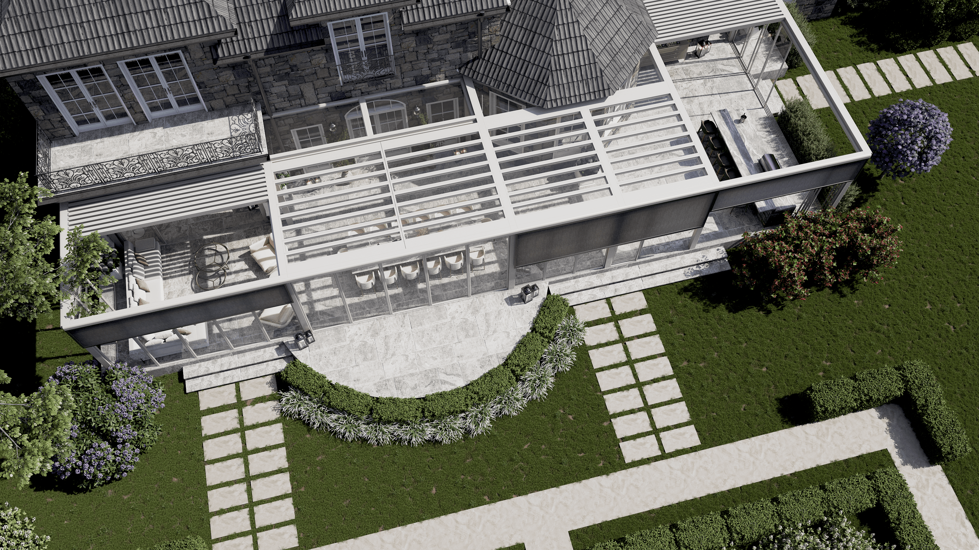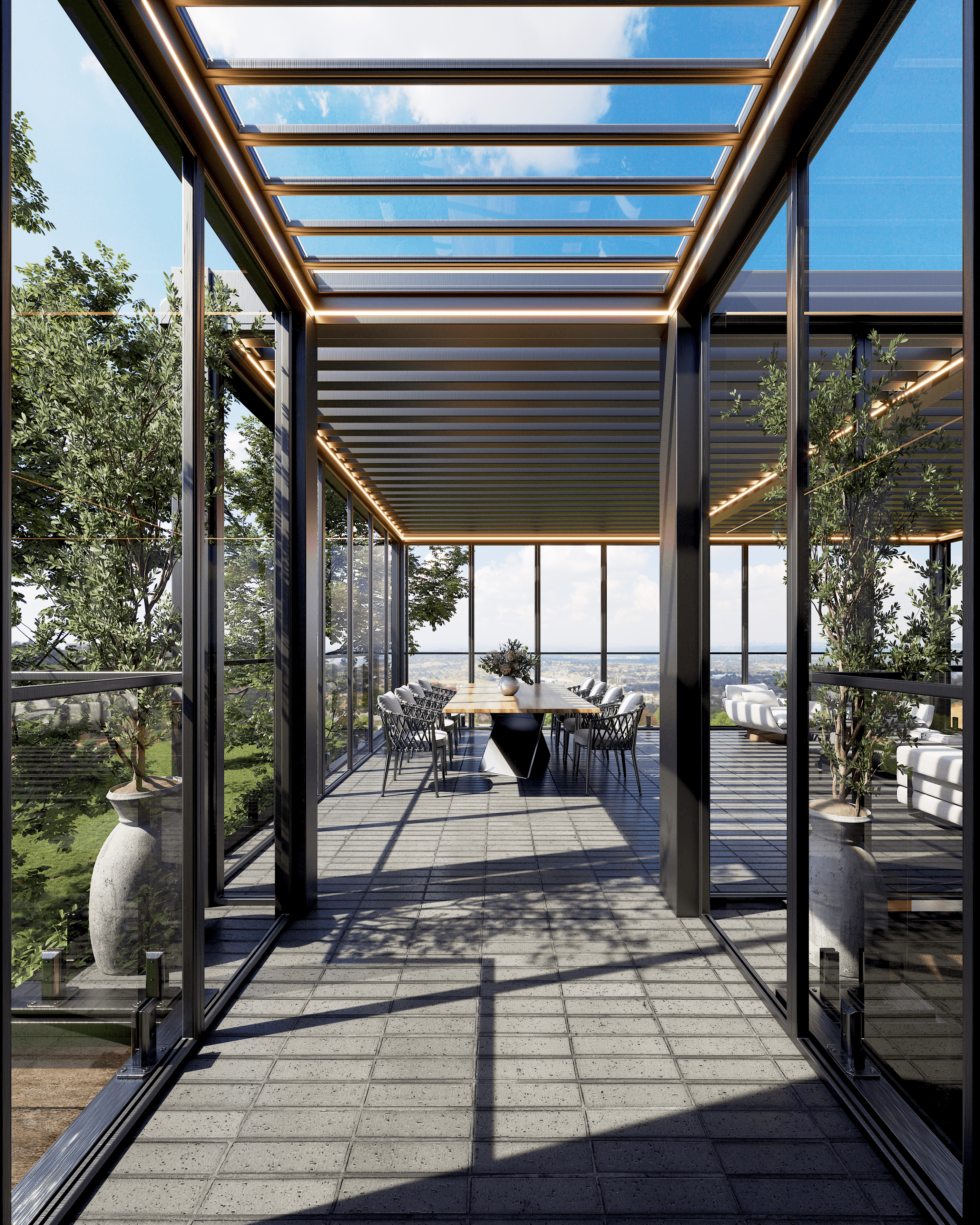 PergolaOne creates next-gen four-season extensions built for modern comfort and convenience. We create rooms that adapt to every season. Open to the sky when you want light. Closed and insulated when you want shelter and warmth. A dynamic space that feels outdoors and indoors at once.